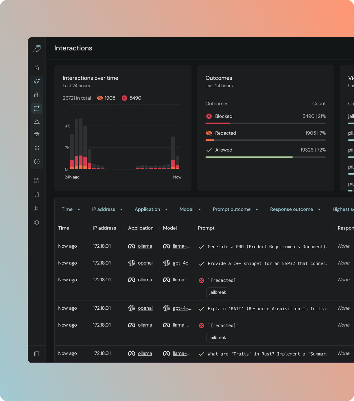 ChatGPT, Copilot, Gemini, and other AI tools across browser and desktop apps. Browser monitoring and gateway enforcement provide real-time visibility into exactly what is being used and what data is being shared.