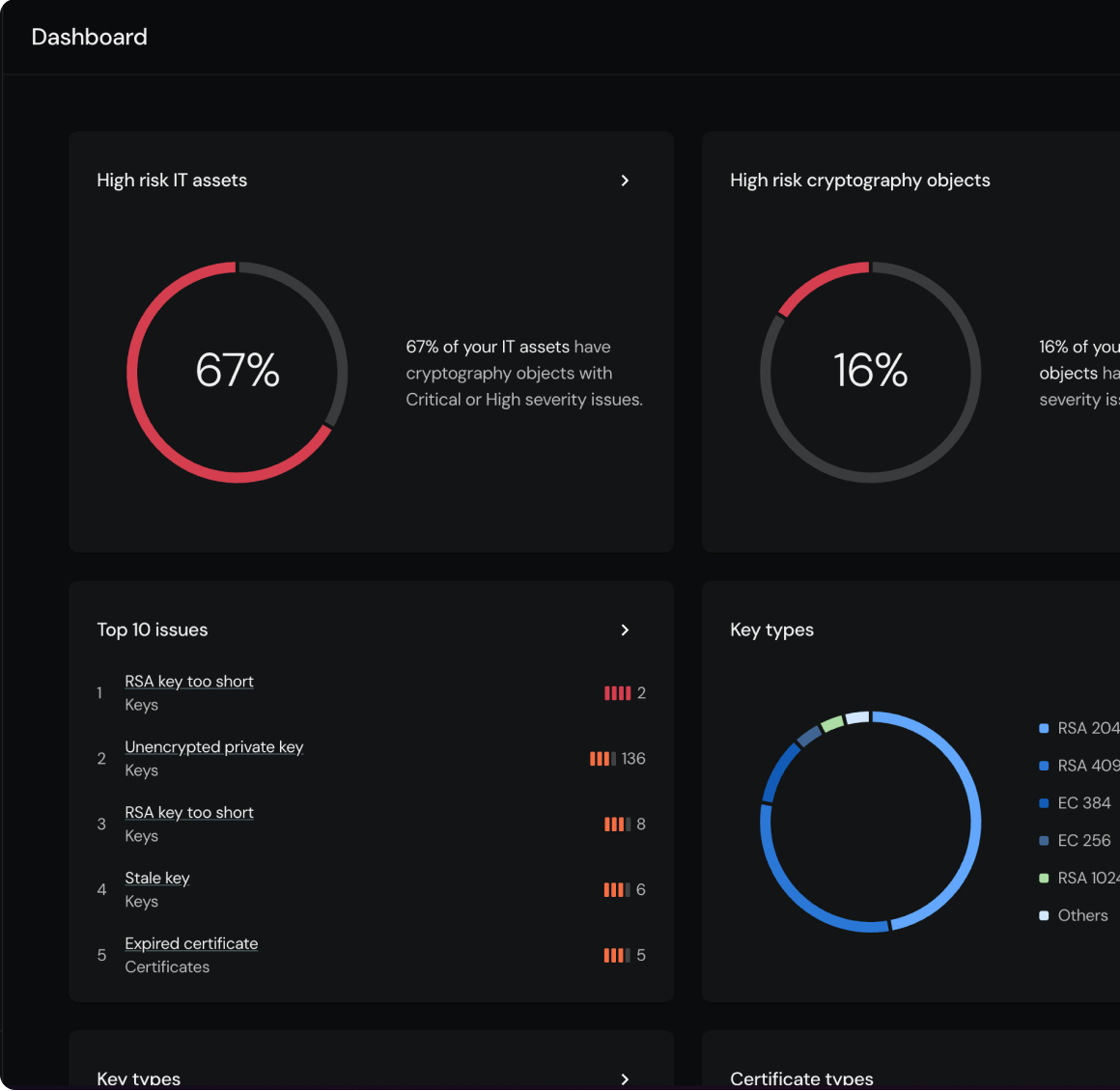 Deprecated algorithms, expired certificates, short keys, and unencrypted private keys create real attack surface today — before quantum is even a factor.